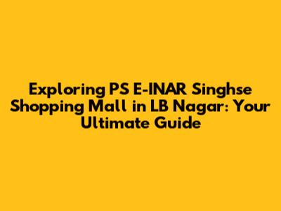 Hey guys! Ever found yourself wondering about the best shopping experiences in LB Nagar? Well, look no further, because we're diving deep into PS E-INAR Singhse Shopping Mall! This place is a buzzing hub of activity, offering a wide array of options for everyone. Whether you're a shopaholic, a foodie, or just looking for a fun day out, this mall has got you covered. Let's explore everything this shopping destination has to offer, from the latest fashion trends to the tastiest treats. Get ready for a virtual tour that will help you plan your next visit! This guide is designed to give you all the details, so you can make the most of your time there.