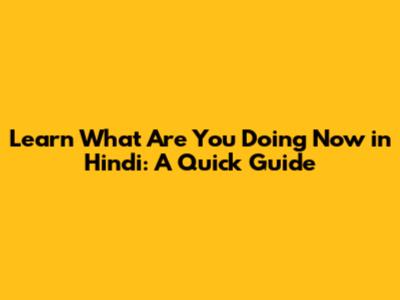 Learn 'What Are You Doing Now' In Hindi: A Quick Guide