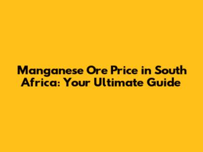 Manganese Ore Price In South Africa: Your Ultimate Guide