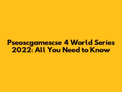 Pseoscgamescse 4 World Series 2022: All You Need To Know