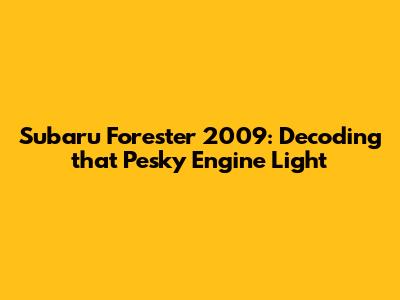 Subaru Forester 2009: Decoding That Pesky Engine Light