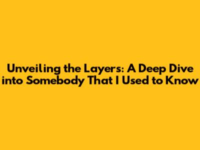Unveiling The Layers: A Deep Dive Into 'Somebody That I Used To Know'